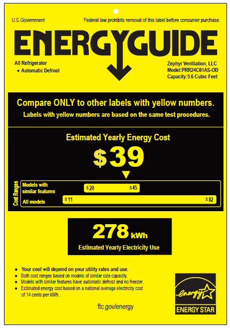 Zephyr Presrv 24-Inch 5.6 Cu. Ft. Outdoor Rated Compact Refrigerator with Locking Door